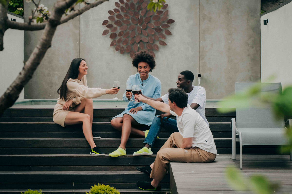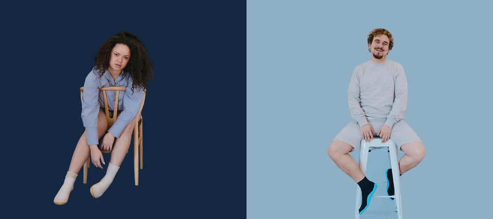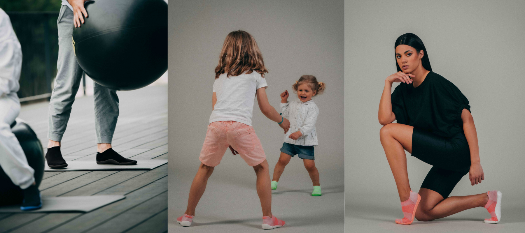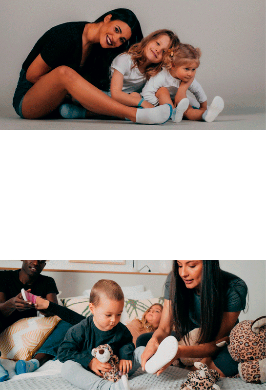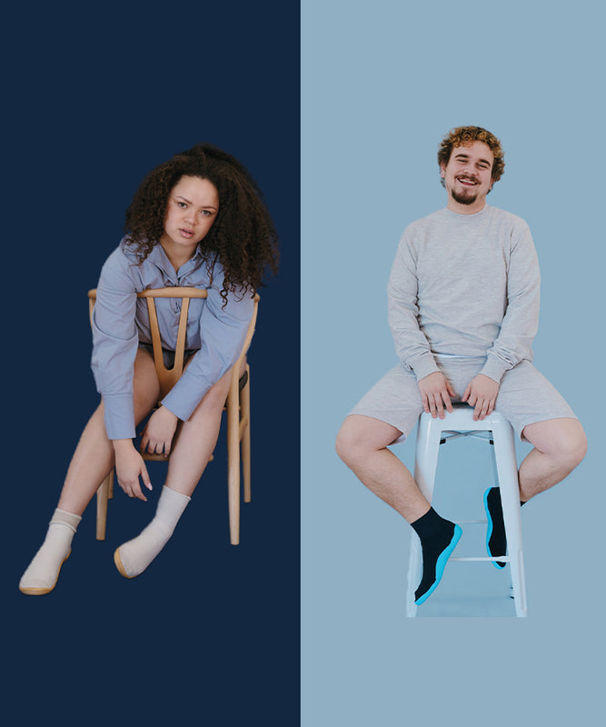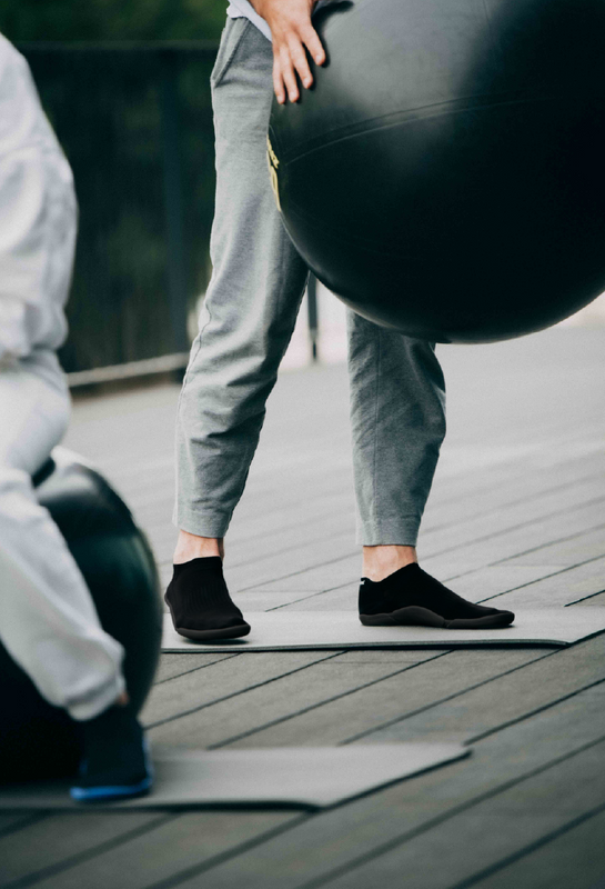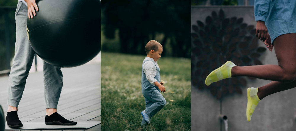 A non-slip, lightweight, ergonomic and flexible sock with sole that offers a unique feeling of support and comfort.